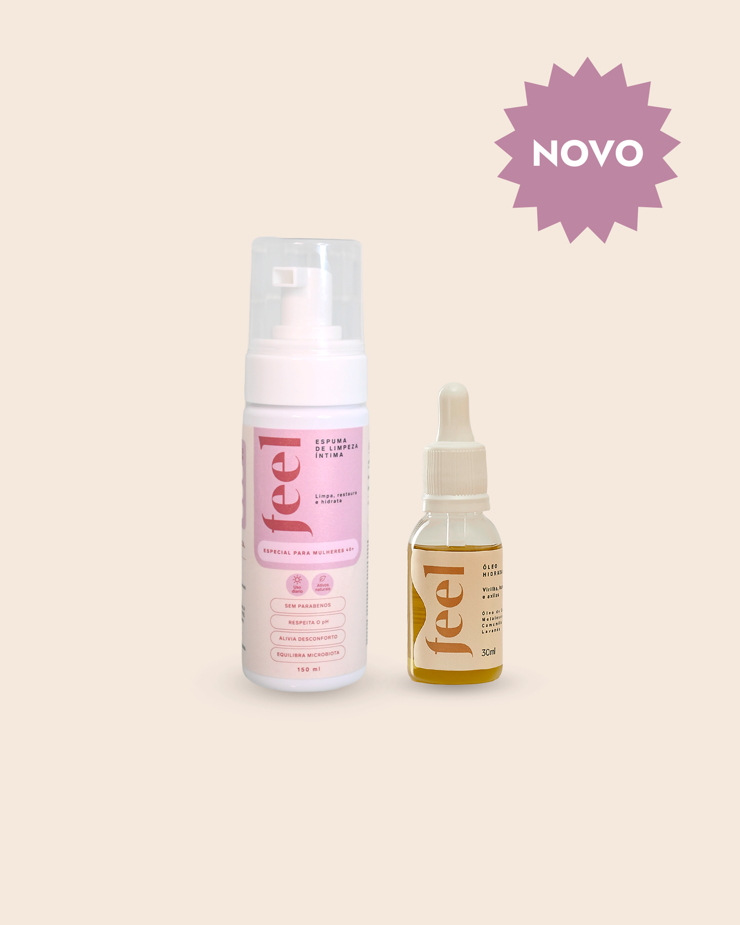 Com a pele limpa e seca, aplique algumas gotas do Óleo Calmante na vulva, virilha e áreas sensíveis. Ele nutre, repara e alivia ressecamento, ardência e irritações do dia a dia. Juntos, Espuma + Óleo formam o ritual completo de restauração íntima.