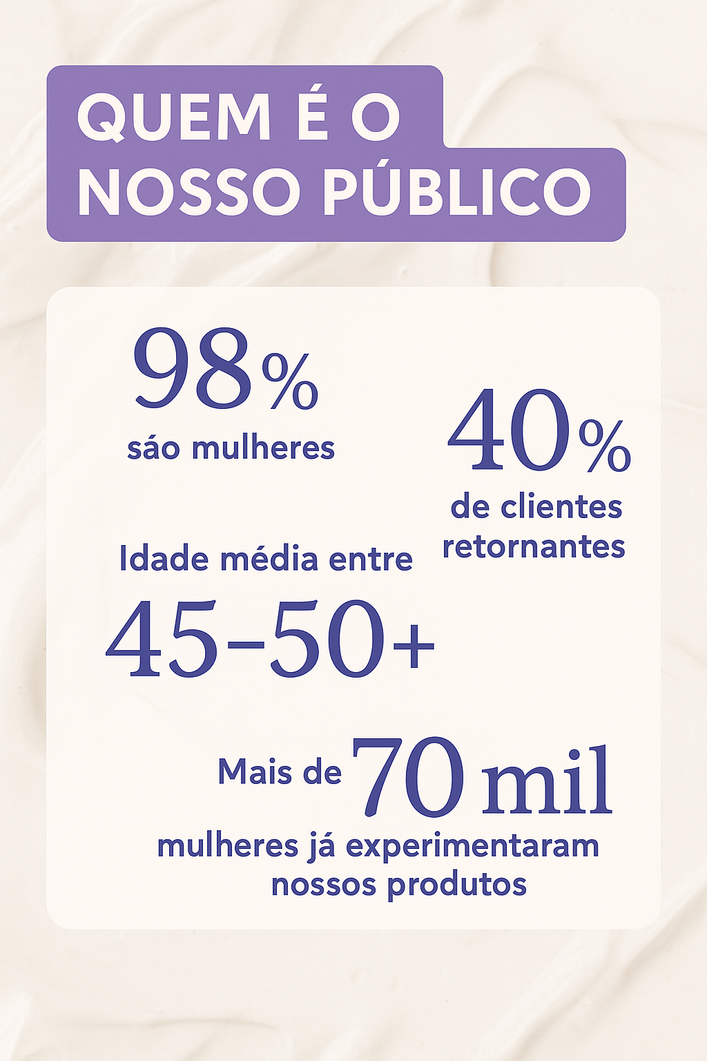 - Esse é o momento de inovar seu portfólio e oferecer o que sua cliente realmente procura: cuidado de verdade.